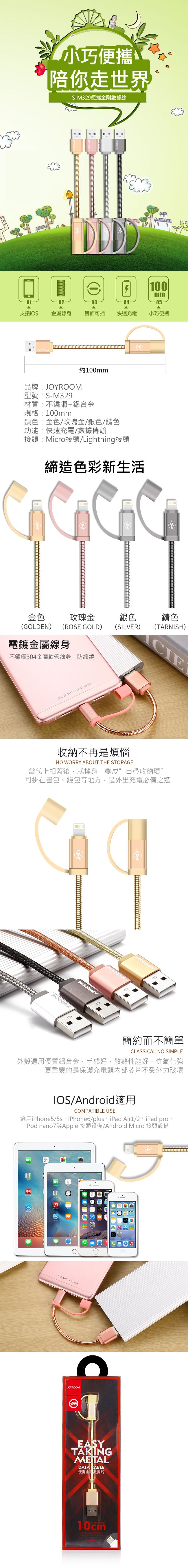 (買一送一) JOYROOM S-M329 便攜金剛充電傳輸線快速充電 小巧便攜 不銹鋼材質