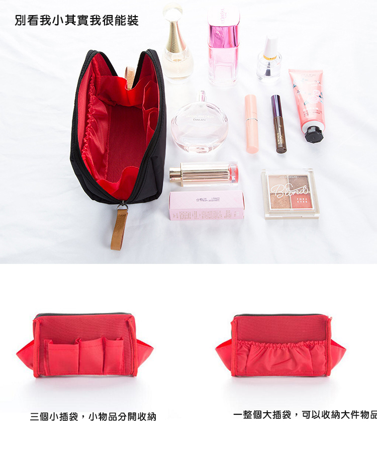 小包包,大容量,分隔層放很能裝,簡約方便攜帶,內有側袋,各式化妝品入列,面膜、口紅、眼影、唇膏、畫眉筆、BB霜...等,都可以收納哦~
